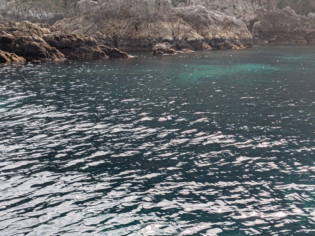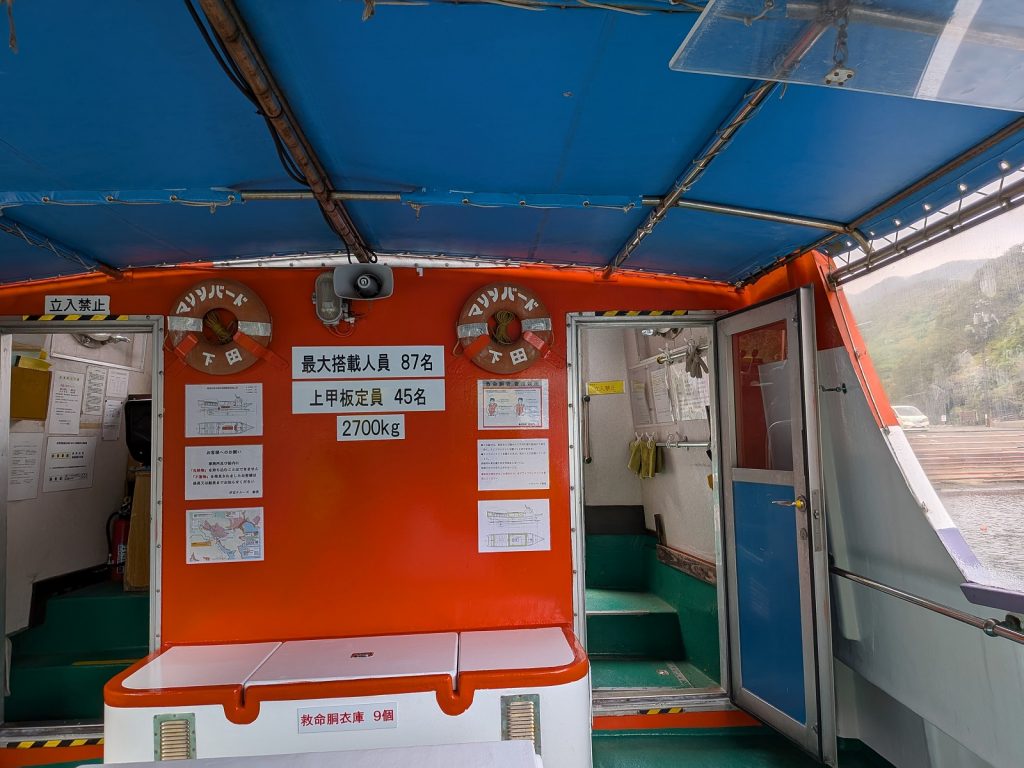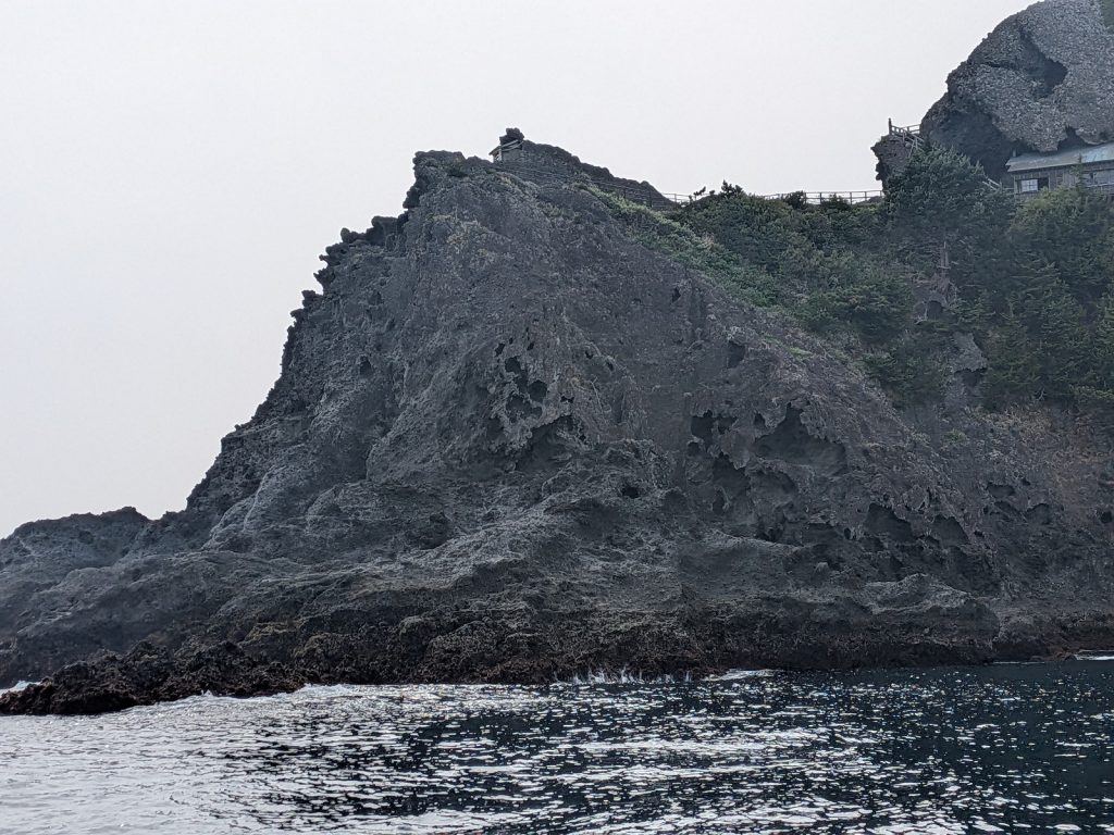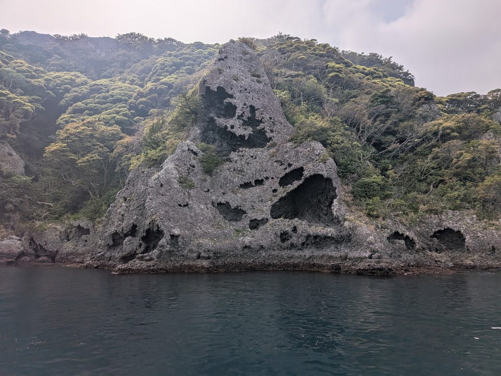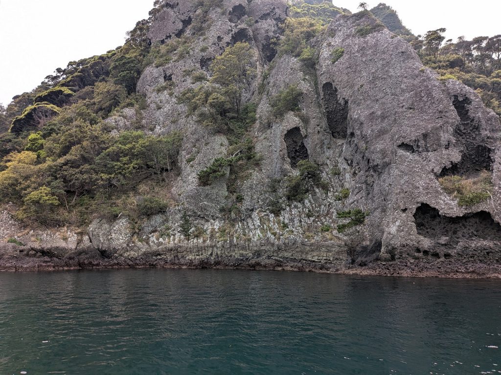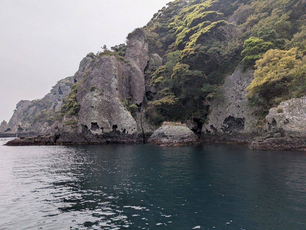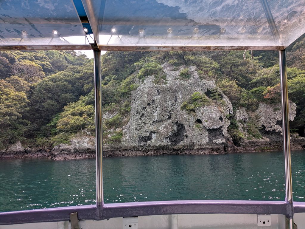 ここから南下してすぐに石廊崎。灯台駐車場と遊覧船駐車場どっちもお金取っていて200円だったので遊覧船に乗る事に。30分毎に出ていて25分クルーズ1600円。2人以上の乗客が居ないと出航はしないとのこと。行楽シーズン外や平日だと出航怪しそう。お客7人だったかな? 海水に侵食された海岸のえぐれ方がすごい。